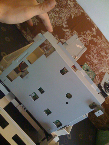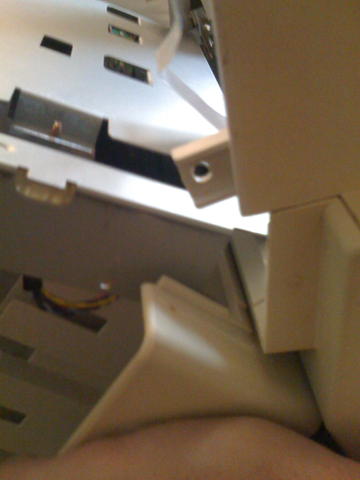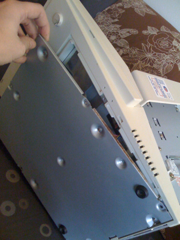 And it's finally off. I'm holding the machine in my lap now, trying to sort out how to get the next part free.