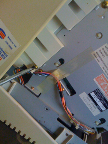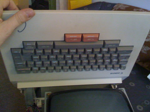 Two screws are all that is left holding the keyboard in place – they were hidden beneath the top half of the case containing the CRT.