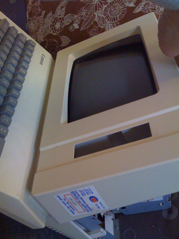 I spend a fair amount of time jiggling around, trying to see what has to happen for the case to come off. The top tilts forward from the CRT, but it doesn't want to come free.